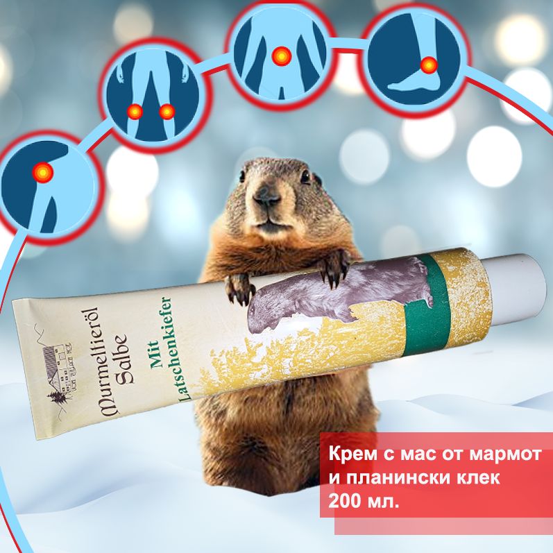 Крем с мас от мармот и алпийски клек прониква в дълбочина и облекчава болката.