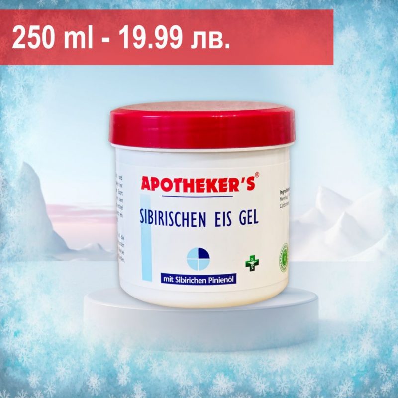 Сибирският леден гел е с множество предимства и помага при при болки в гърба, кръста, врата, рамената и ставите. Съдържа мощна комбинация от билкови съставки, които облекчават силните болки след първото нанасяне върху проблемната зона. Бързо се абсорбира от кожата, за да осигури мигновен ефект в дълбочина. Да се прилага по 2 пъти дневно с масажно движения.